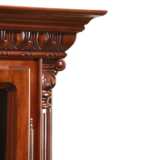 Cristalier din lemn masiv, cu o înălțime impozantă, lucrat cu migală în cele mai mici detalii.